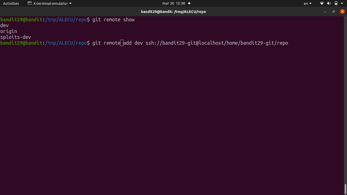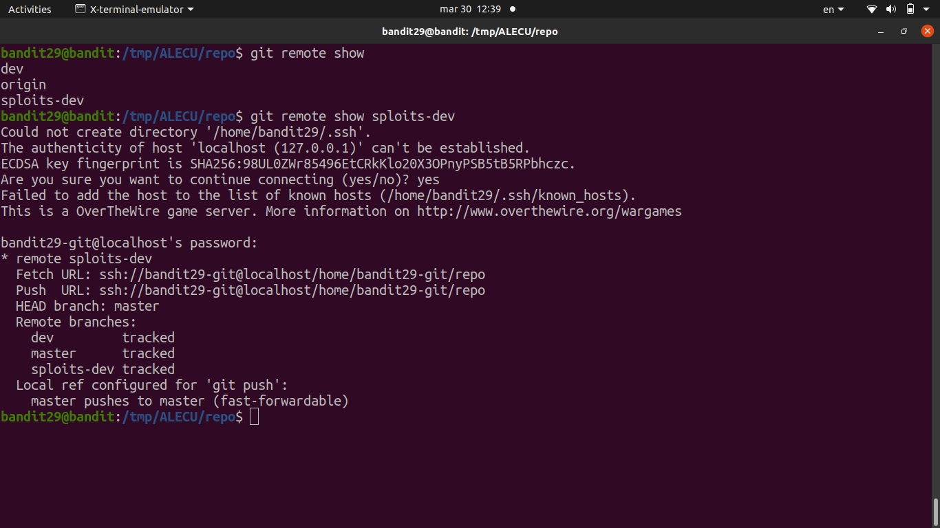 ssh://bandit29-git@localhost/home/bandit29-git/repo. - The