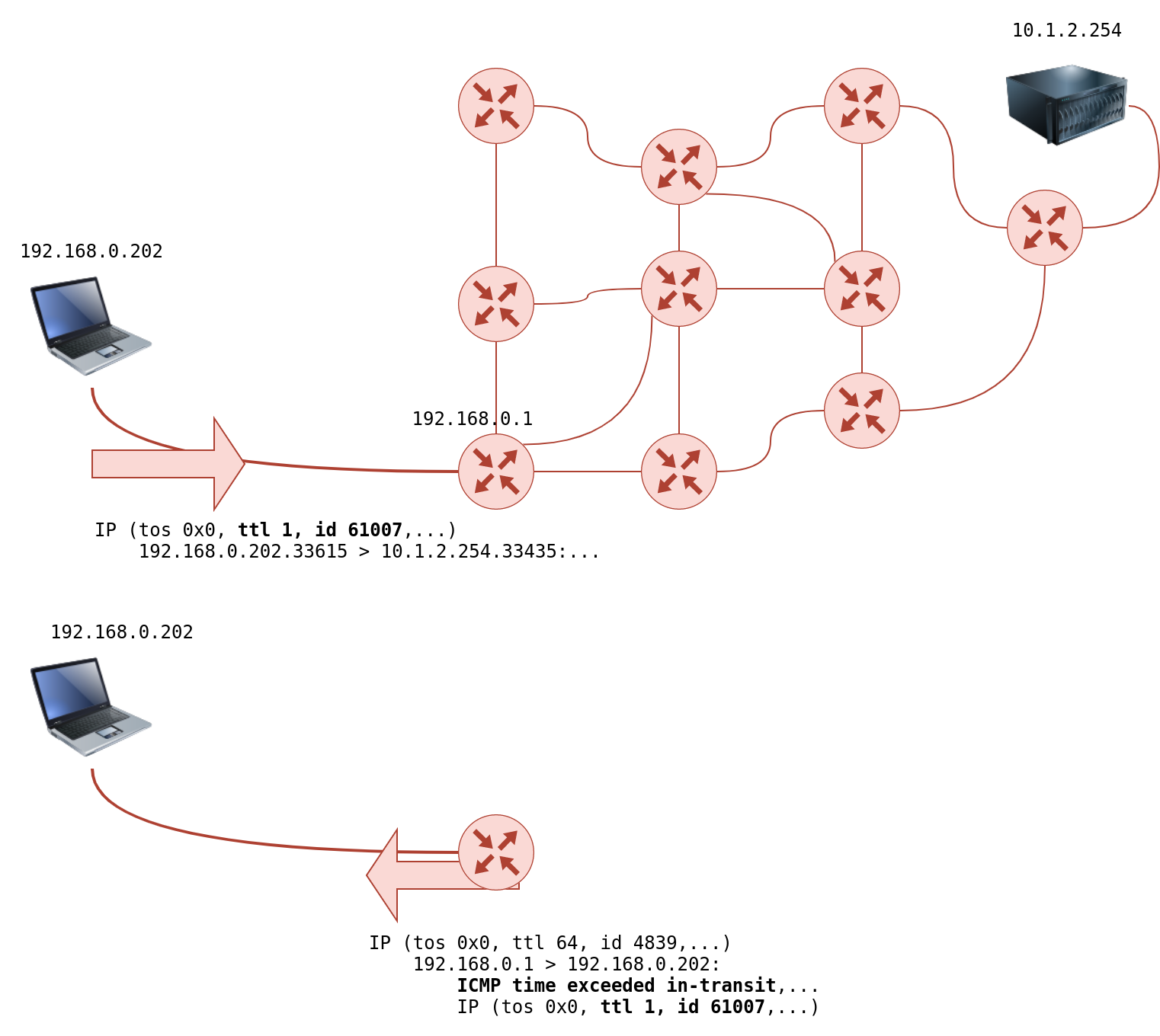 In the following figure, the system set TTL to 1 before sending it to the router.