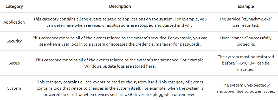 - A timestamp of the event (I.e. Date & Time)