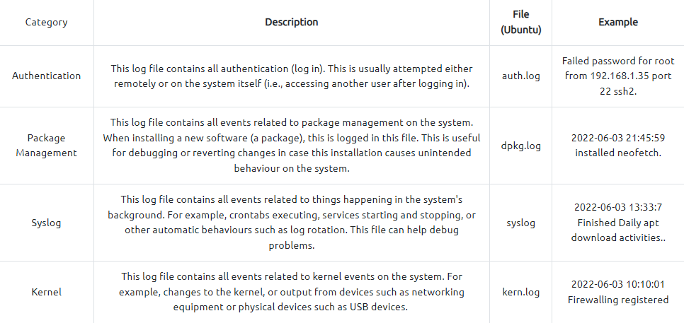 - The name of the service that is generating the logfile (I.e. SSH is a remote device management protocol that allows a user to login into a system remotely)