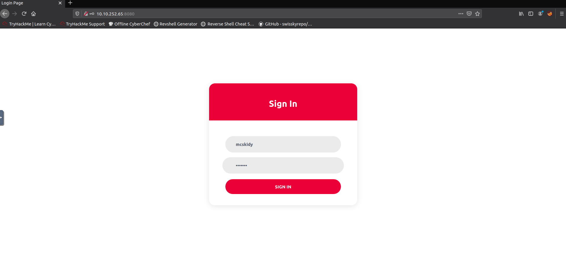 - Logged in with the given credentials: