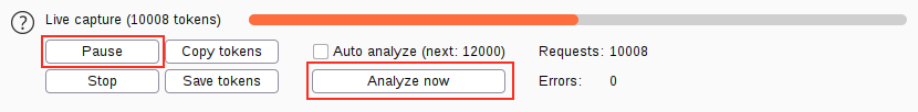 Once around 10,000 tokens are captured, click on Pause and then select the Analyze now button: