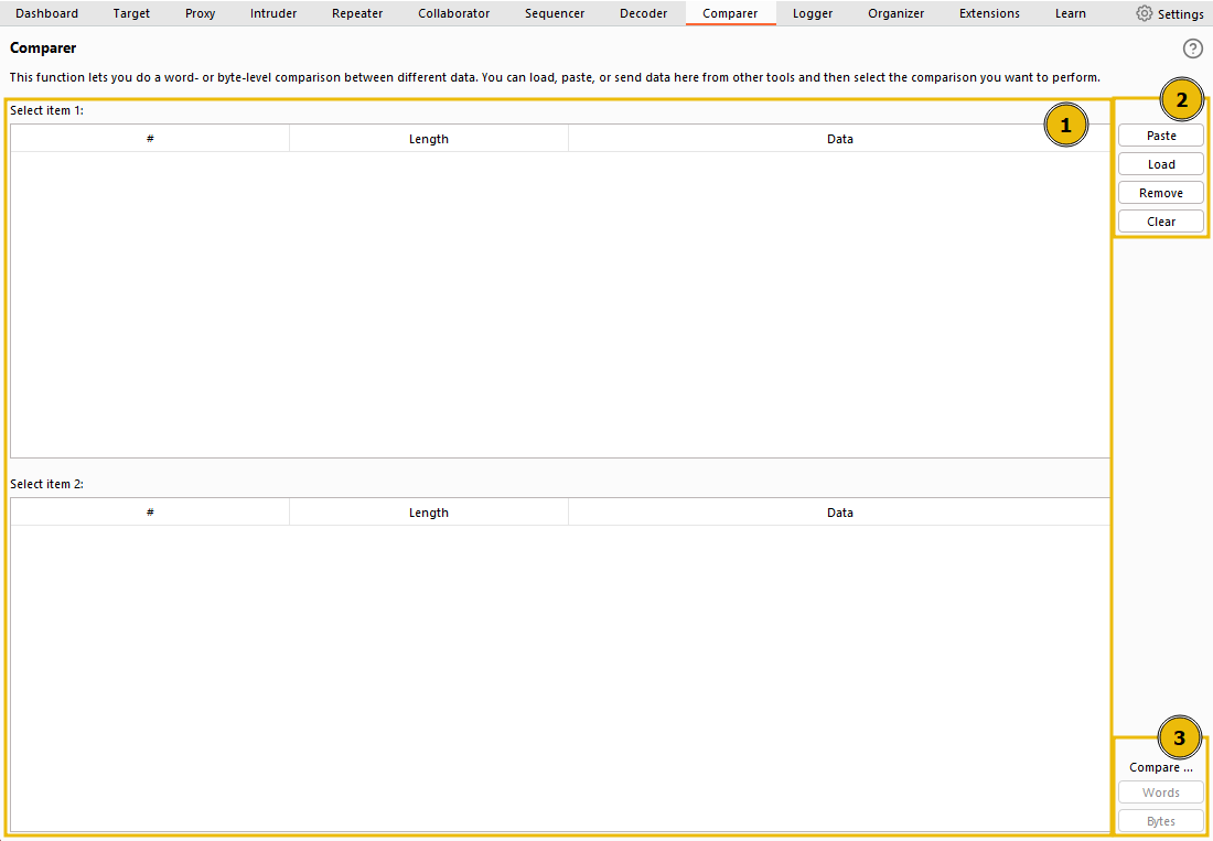 Comparer, as the name implies, lets us compare two pieces of data, either by ASCII words or by bytes.