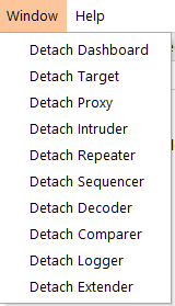 - Navigating around the Burp Suite GUI by default is done entirely using the top menu bars: