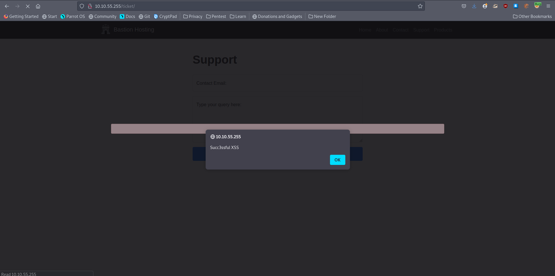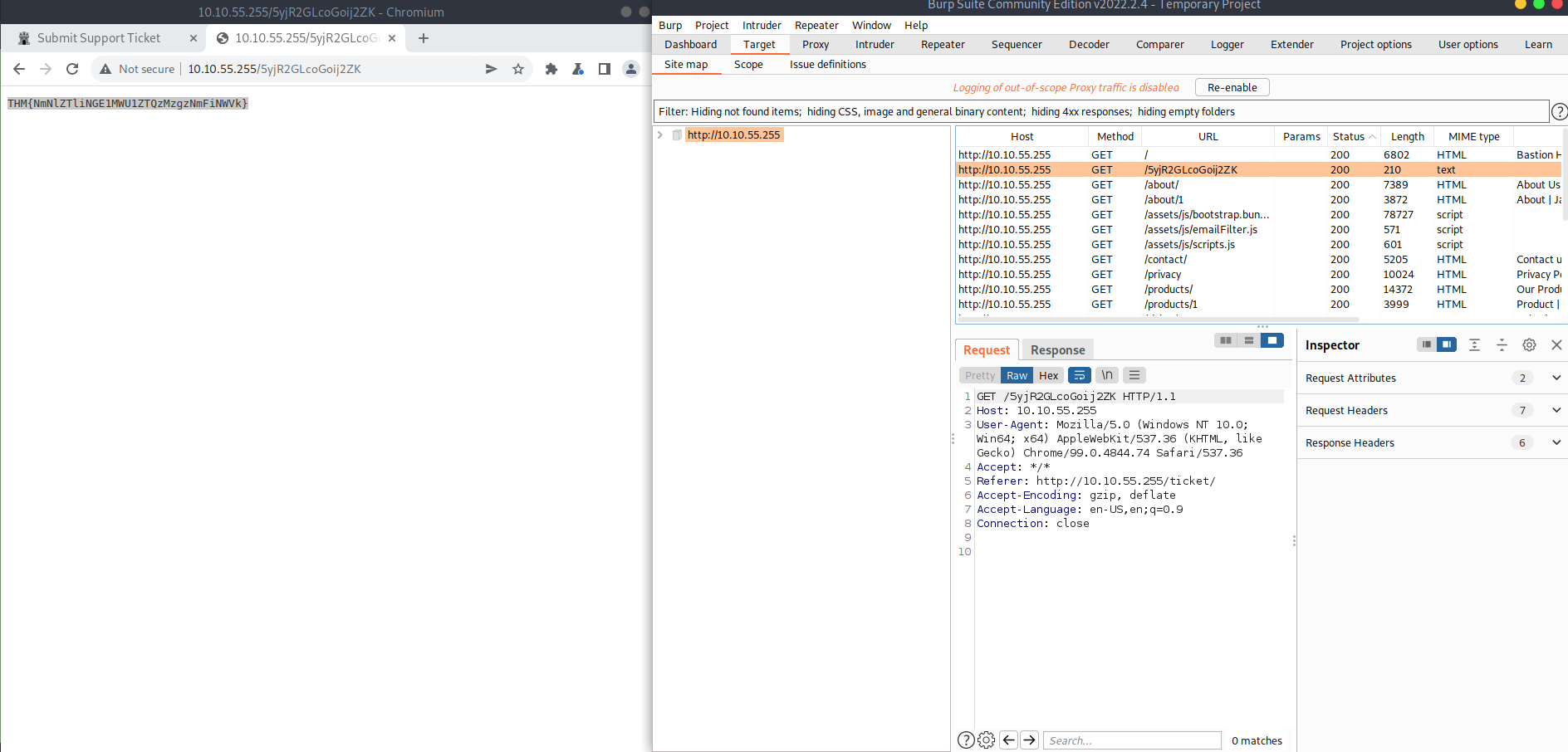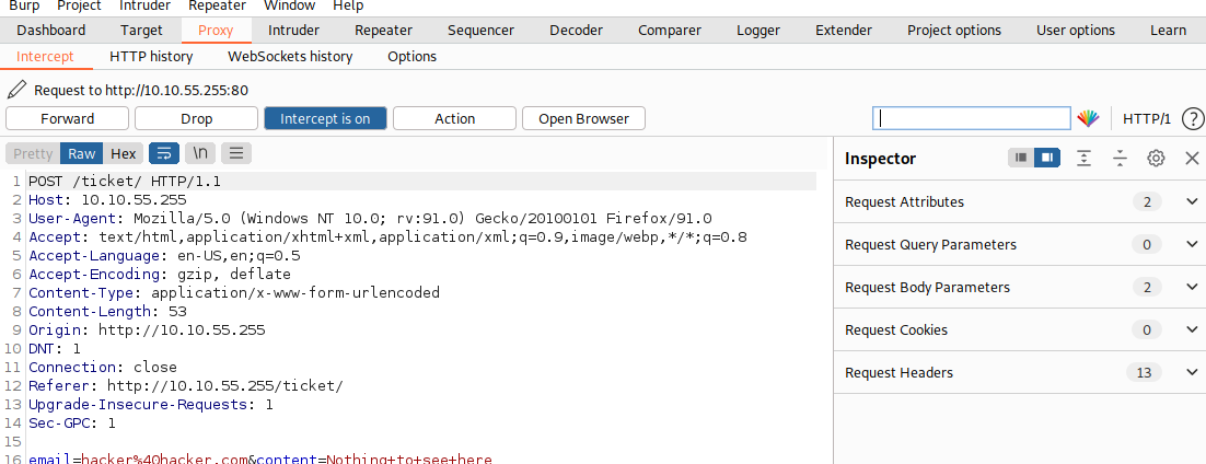 - Using the in-built browser, make a request to http://10.10.55.255/ and capture it in the proxy.