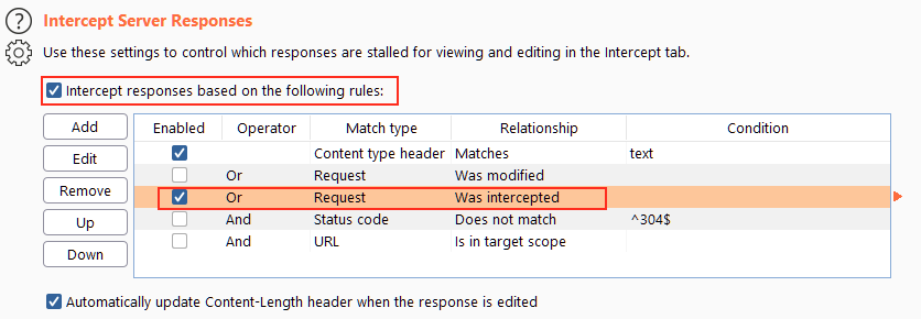 Or Request Was Intercepted” rule is good for catching responses to all requests that were intercepted by the proxy: