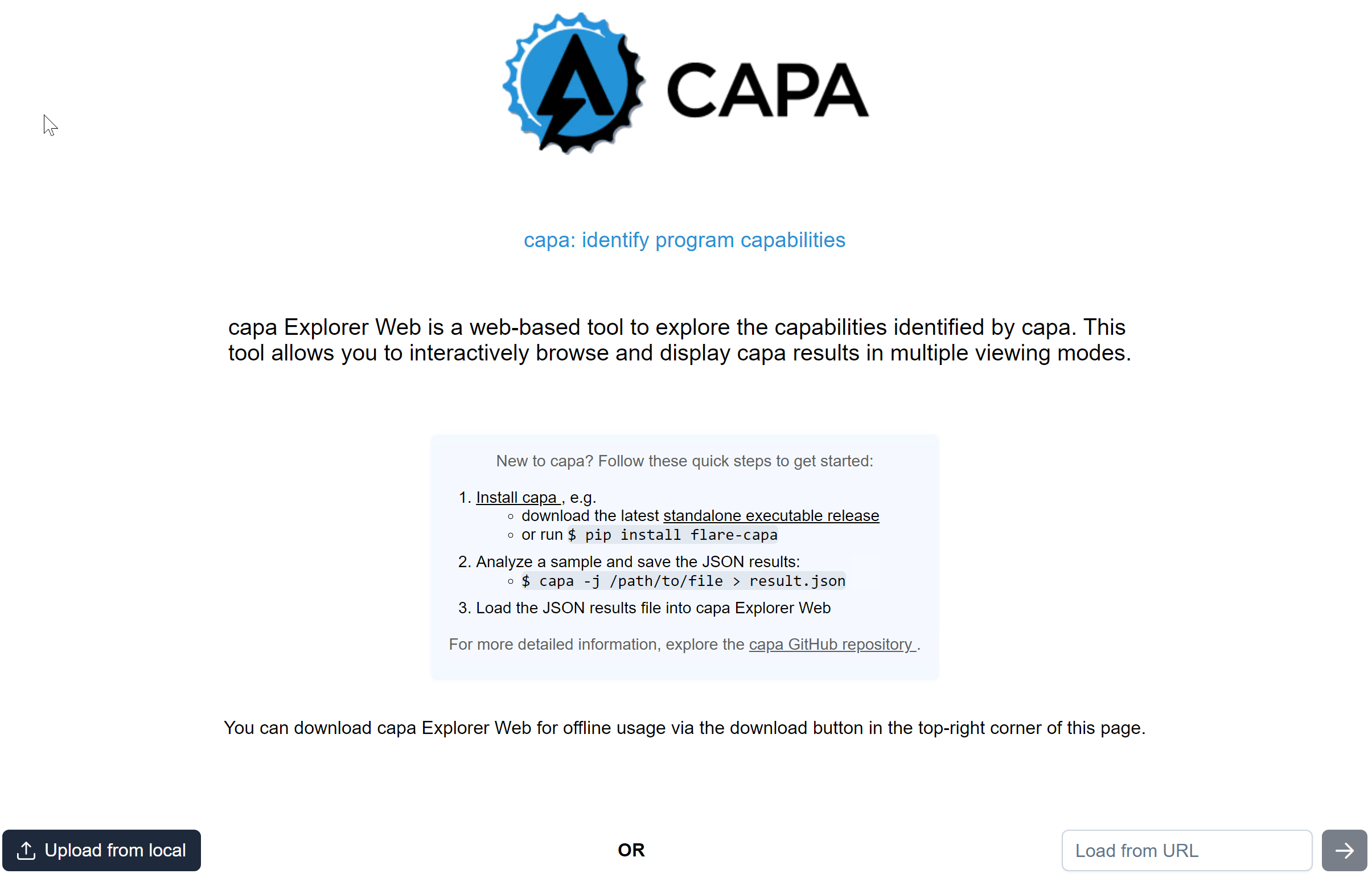 The second thing we need to do is upload the file to CAPA Explorer Web. We can either use their online version here on this link, or the offline version already in the virtual machine.