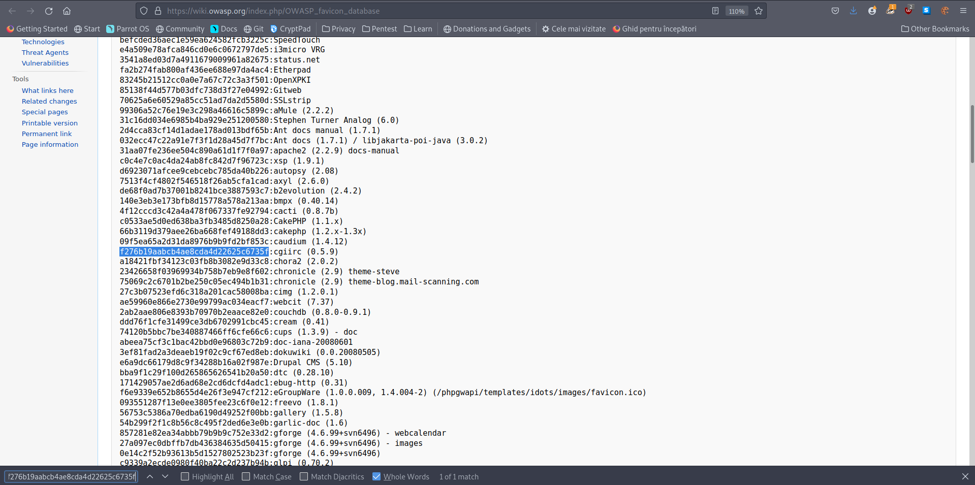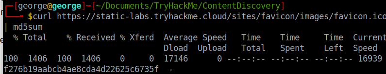 - Used the following command to get the md5 of the favicon: