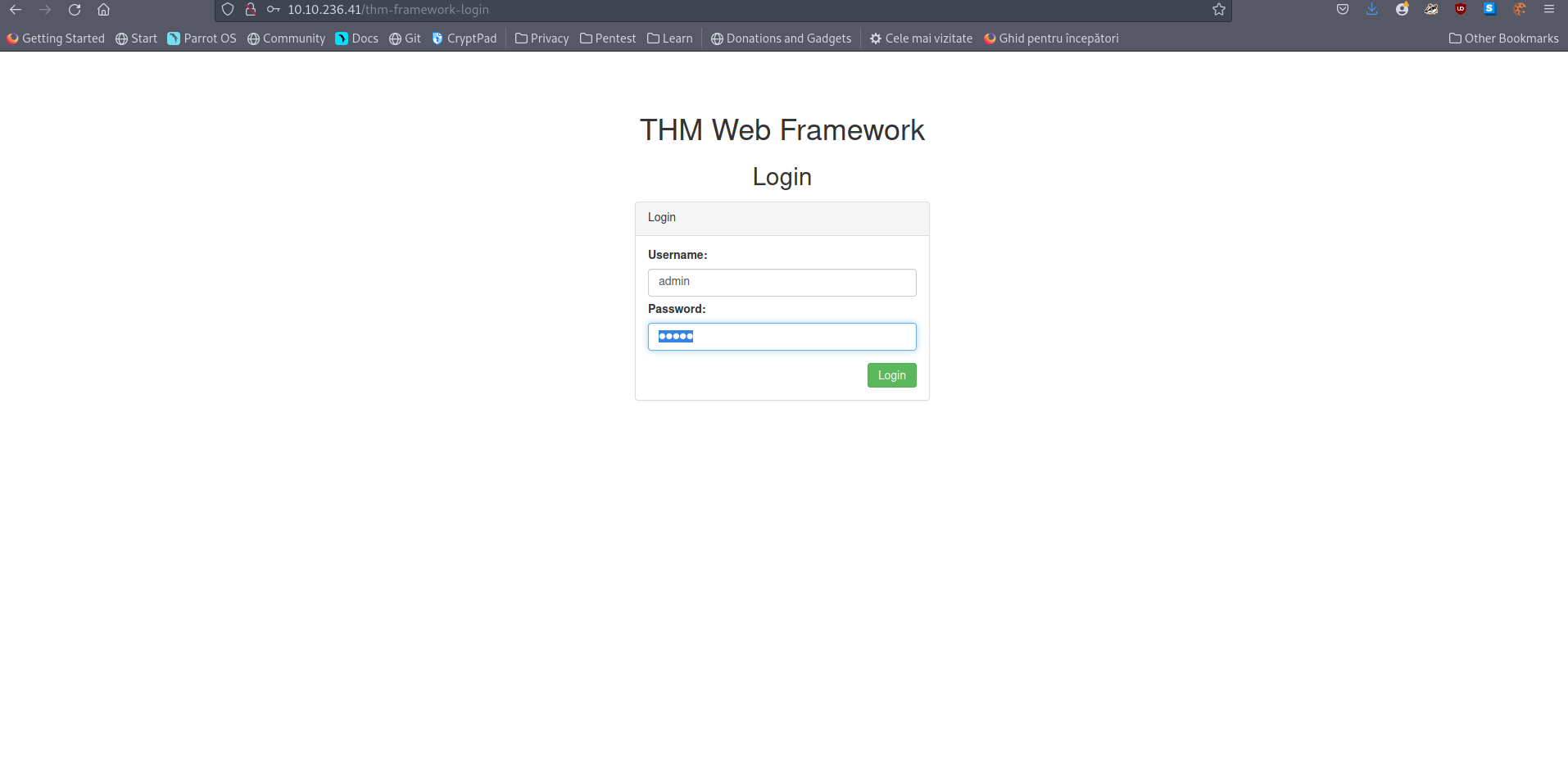- Navigate to the framwork login page we get the following clues:
