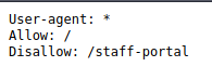 - What is the directory in the robots.txt that isn’t allowed to be viewed by web crawlers?
