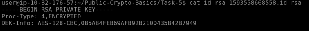 Q: Check the SSH Private Key in ~/Public-Crypto-Basics/Task-5. What algorithm does the key use?