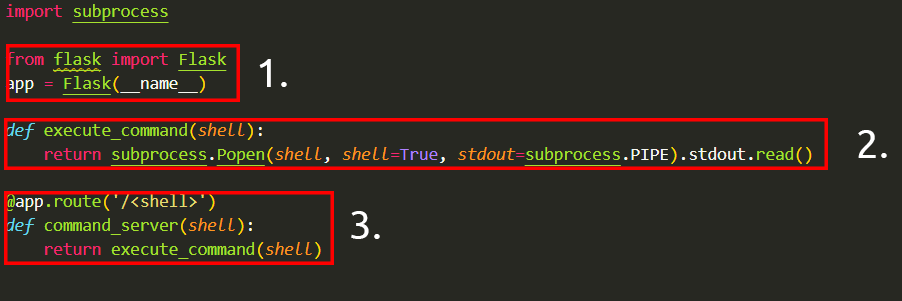 - We use a route in the webserver that will execute whatever is provided. For example, to execute
