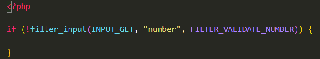 In the snippet below, the filter_input PHP function is used to check whether or not any data submitted via an input form is a number or not. If it is not a number, it must be invalid input.