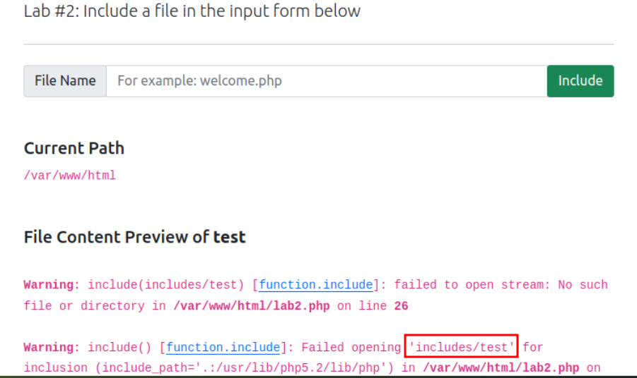 Now apply what we discussed, try to read files within the server, and figure out the directory specified in the include function and answer question #2 below.