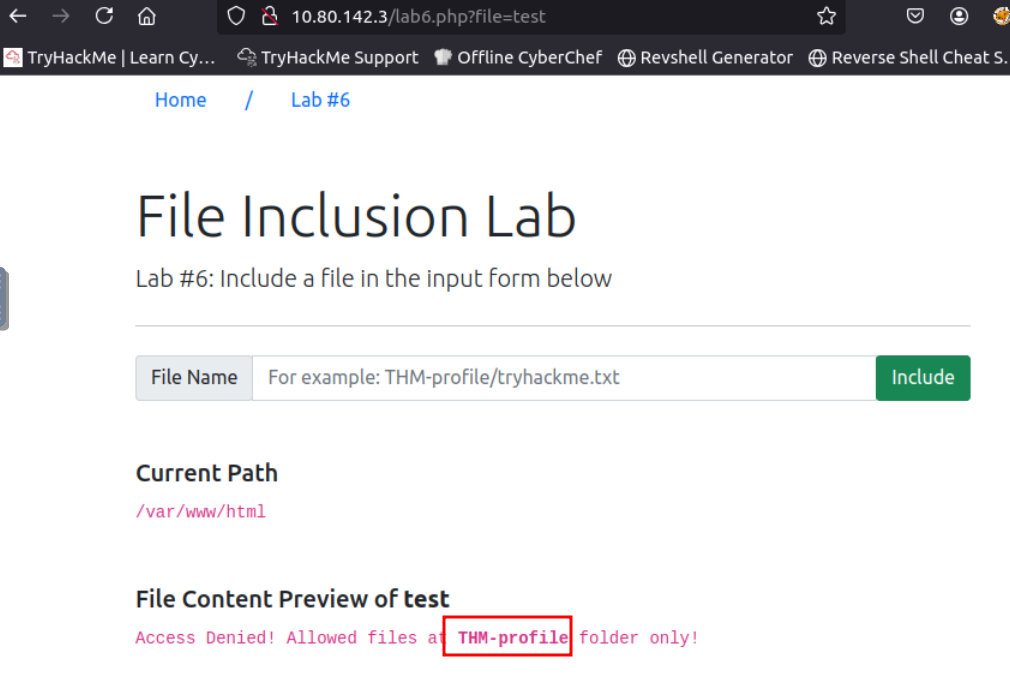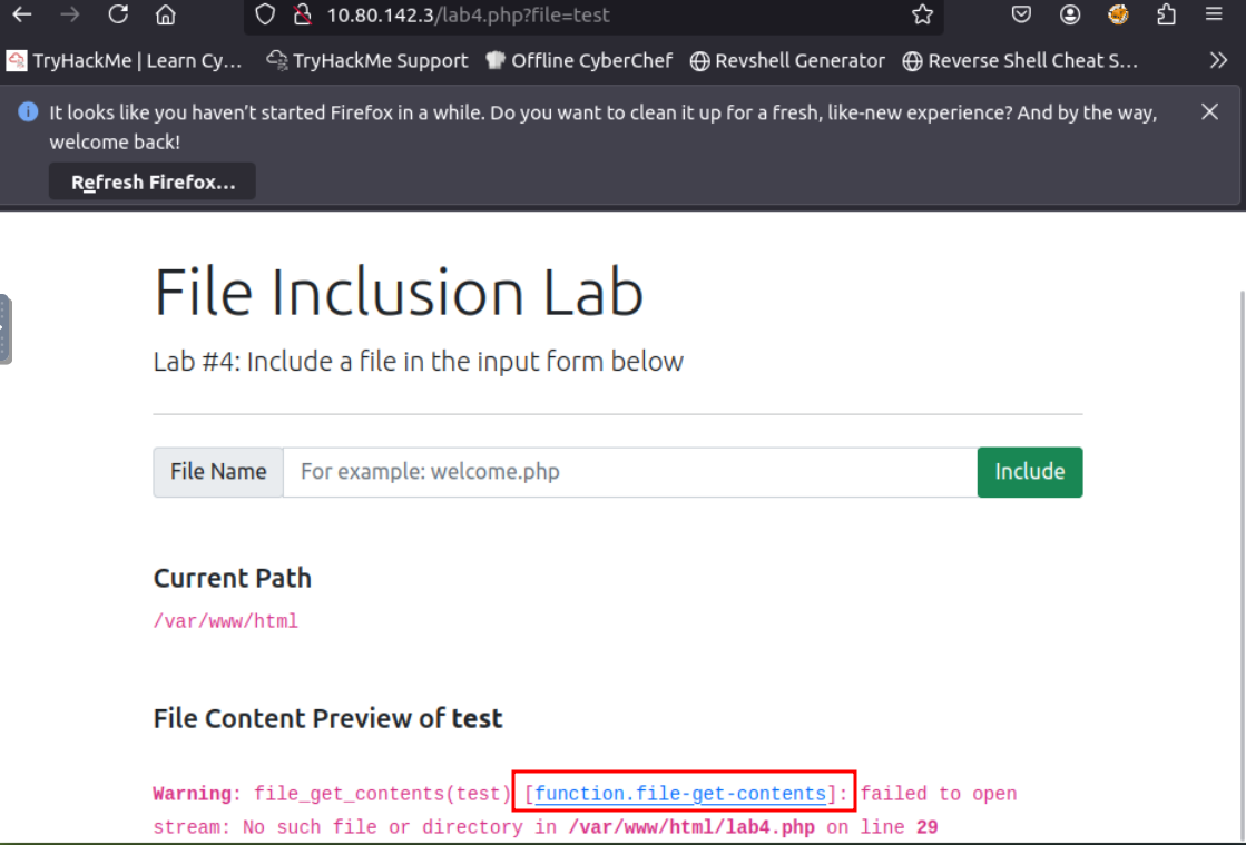 Also, the error message disclosed another important piece of information about the full web application directory path which is /var/www/html/THM-4/.