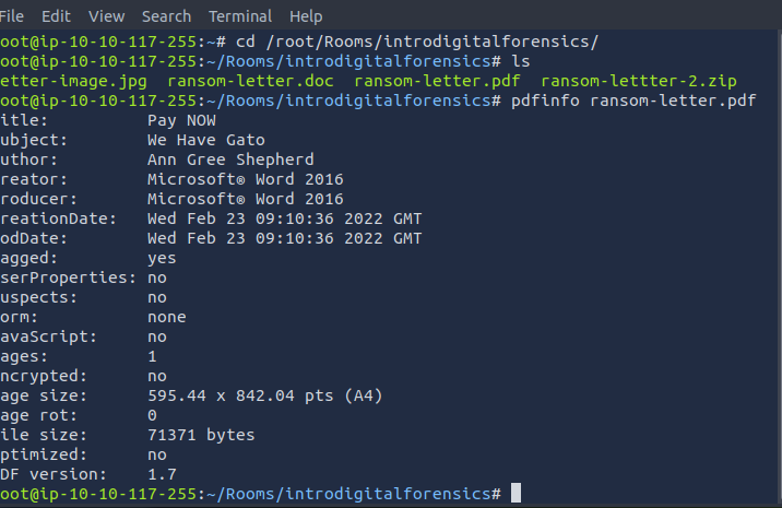 cd /root/Rooms/introdigitalforensics