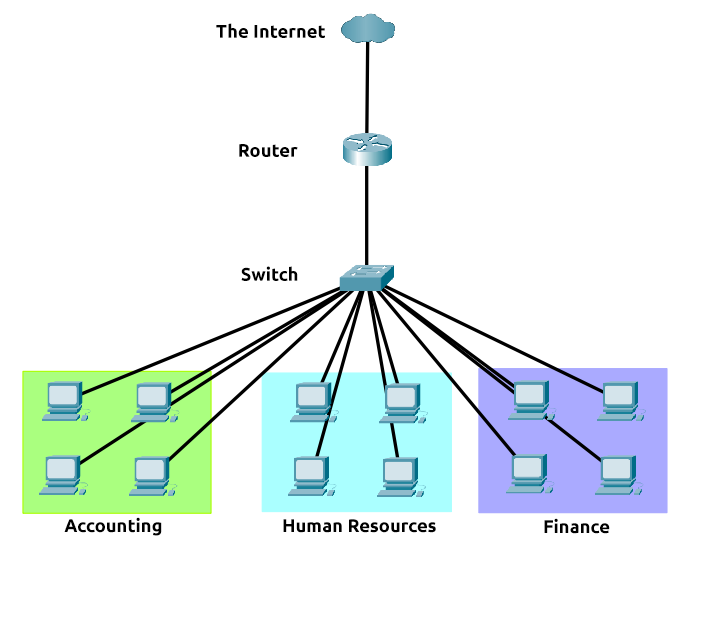 Devices are individually connected via a central networking device, such as a switch or a hub