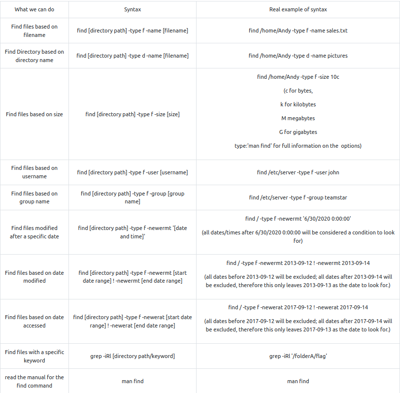 - Output: use the Find command to find a file with a modified date of 2016-09-12 from the /workflows directory