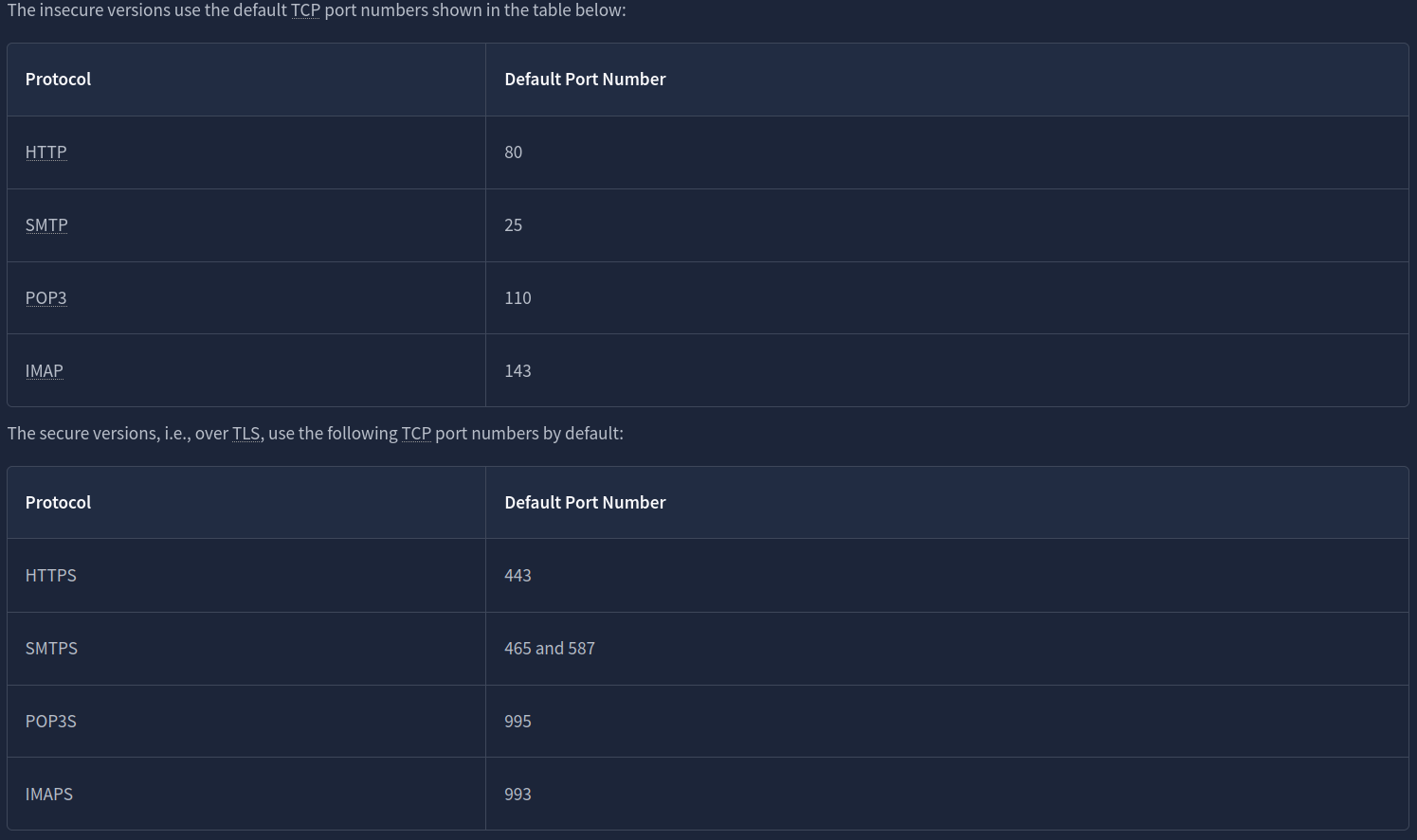 Adding TLS to SMTP, POP3, and IMAP is no different than adding TLS to HTTP. Similar to how HTTP gets an appended S for Secure and becomes HTTPS, SMTP, POP3, and IMAP become SMTPS, POP3S, and IMAPS, respectively. Using these protocols over TLS is no different than using HTTP over TLS; therefore, almost all the points from the HTTPS discussion apply to these protocols.