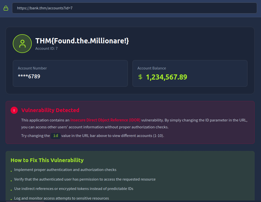 Broken Access Control happens when the server doesn’t properly enforce who can access what on every request. A common occurence of this is IDOR (Insecure Direct Object Reference): if changing an ID (like ?id=7 → ?id=6) lets you see or edit someone else’s data, access control is broken.