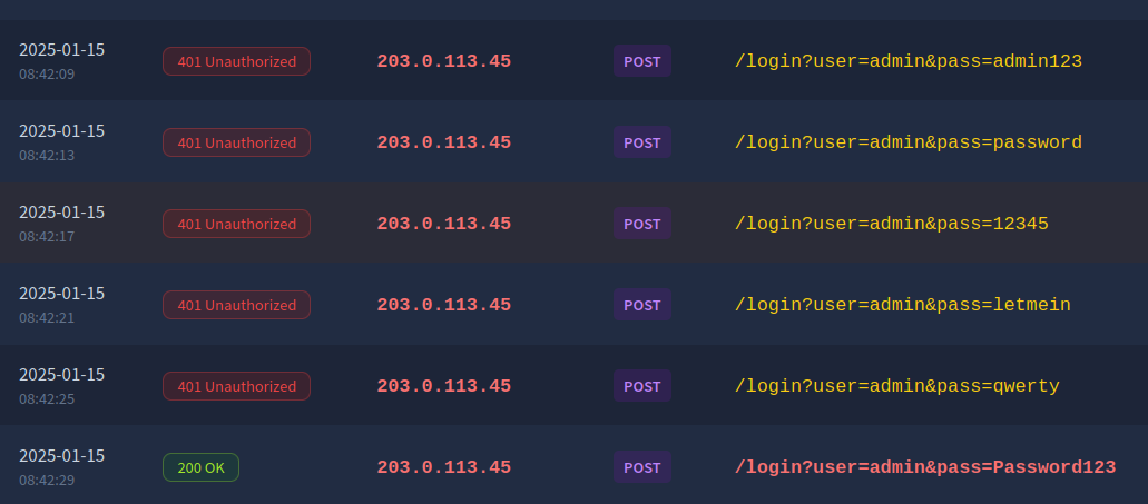 Q: It looks like an attacker tried to perform a brute-force attack, what is the IP of the attacker?