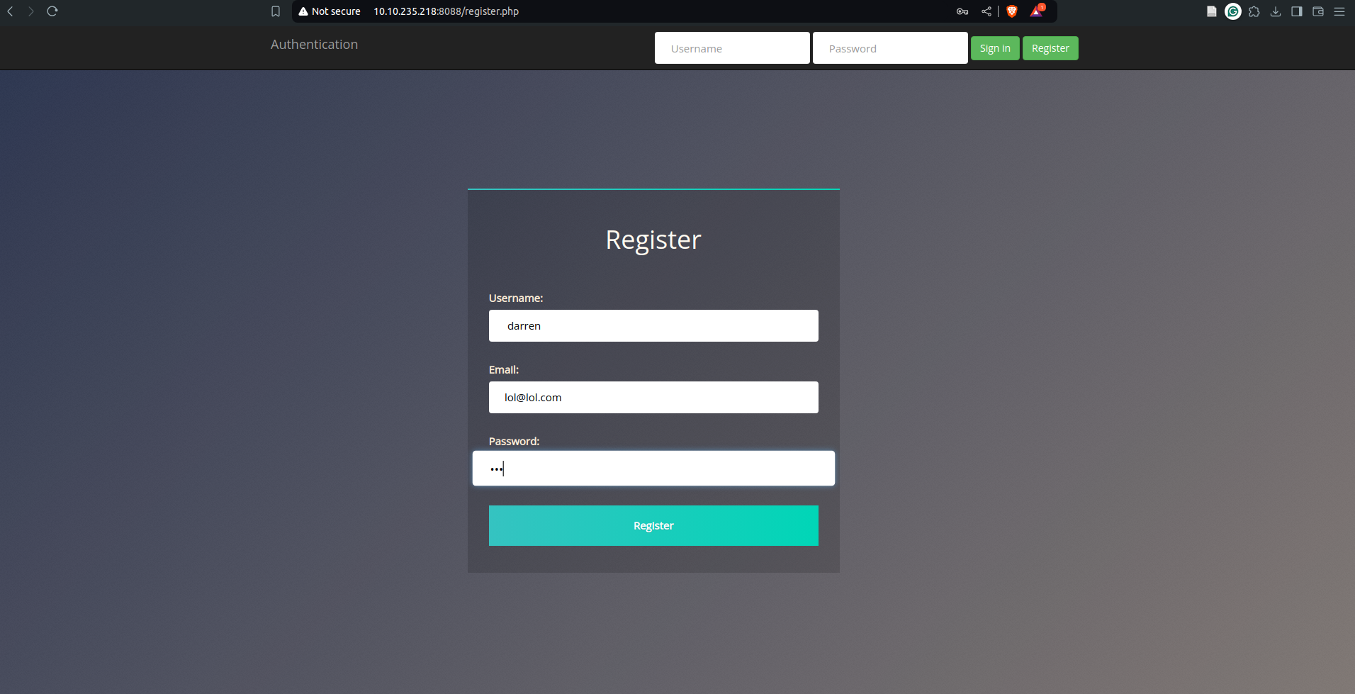 admin:qwertyuiopon the login page of the website.A: THM{Yzc2YjdkMjE5N2VjMzNhOTE3NjdiMjdl}
