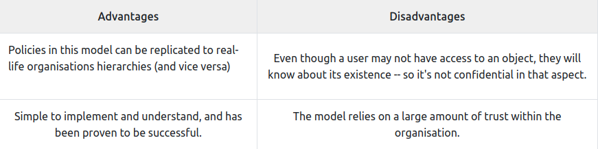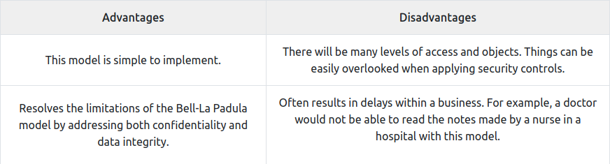 - used in org. where integrity is more important than confidentiality, for example in software develpment companies, where a developer only needs access to what is neccessary to its job, and not access to for ex, the databases.
