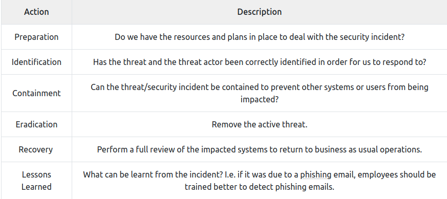 - An incident is responded to by a CSIRT team (Computer Security Incident Response Team). To solve an incident, these steps are taken: