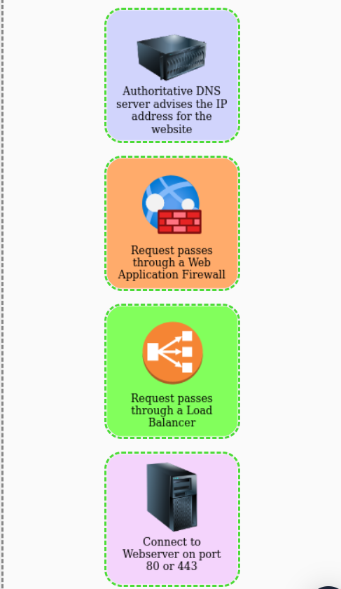 - When you request a website with a load balancer, the load balancer will receive your request first and then forward it to one of the multiple servers behind it.