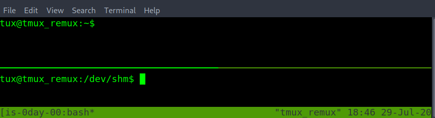 - With the updated starting or base directory done above as /dev/shm. Creating a new pane start in the /dev/shm directory.