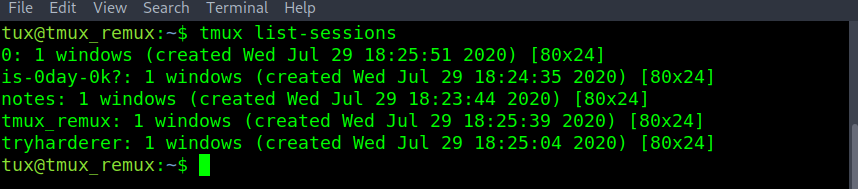 - Running tmux ls also shows the current session in use.