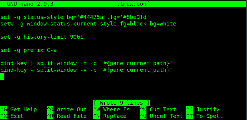 When creating the tmux configuration script it is important that. The file name is .tmux.conf and .tmux.conf is saved within the user’s home directory /home/username/.tmux.conf