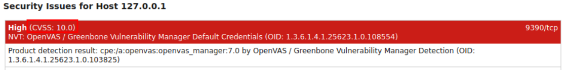 It will take a few minutes to complete the scan. After the scan is completed, you will see its status marked as “Done”. The visualizations inside the Tasks dashboard will display some numbers indicating the severity of vulnerabilities found. To check the details of the scan, you have to click on the task name: