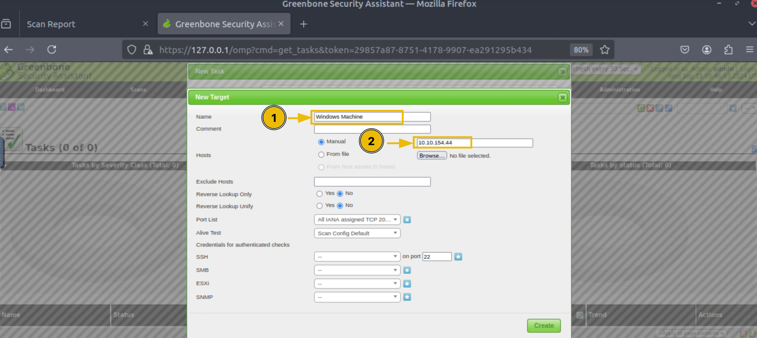 Enter the name of the task, and click the “Scan Targets” option as highlighted in the screenshot: