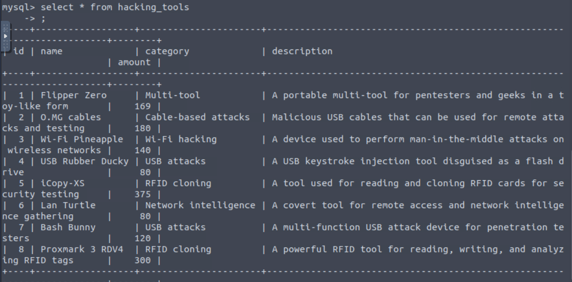 Q: Using the tools_db database, what is the shared category for both USB Rubber Ducky and Bash Bunny?