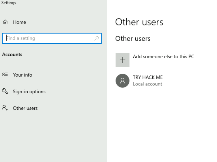 Since you’re the Administrator, you see an option to Add someone else to this PC.