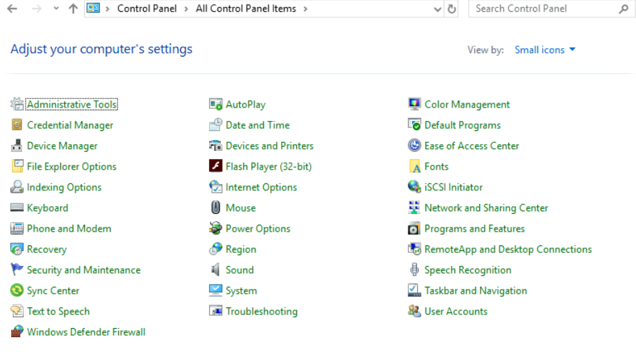 - In the Control Panel, change the view to Small icons. What is the last setting in the Control Panel view?