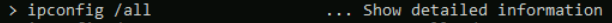 - For the ipconfig command, how do you show detailed information?