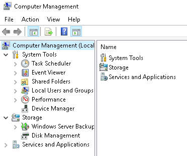 - The Computer Management (compmgmt) utility has three primary sections: System Tools, Storage, and Services and Applications.