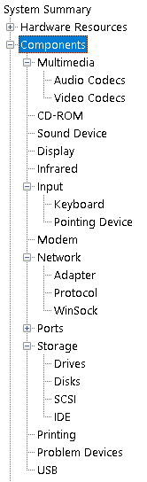 Components, you can see specific information about the hardware devices installed on the computer.- Some sections don’t show any information, but some sections do, such as