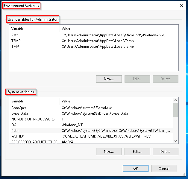 Per Microsoft, “Environment variables store information about the operating system environment. This information includes details such as the operating system path, the number of processors used by the operating system, and the location of temporary folders.