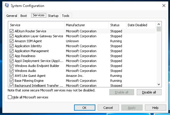 - Here you can do more than enable and disable a service, such as view the Properties for the service.