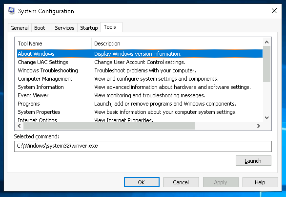 - In the tools section, I launched the About Windows tool