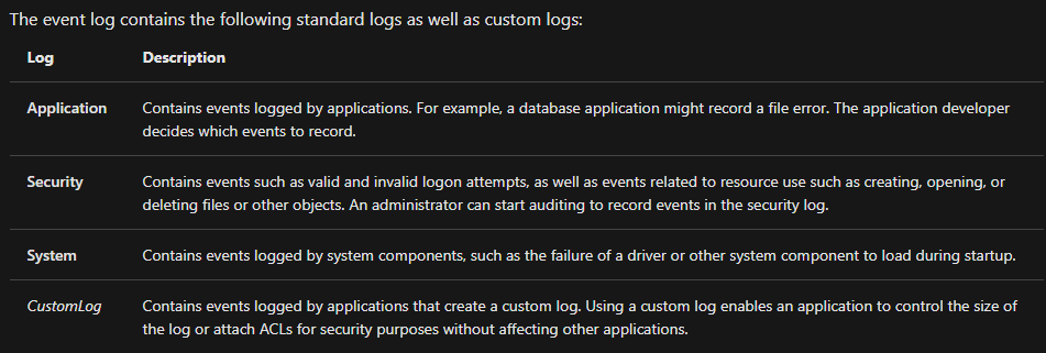 - The pane on the left provides a hierarchical tree listing of the event log providers. (as shown in the image above)