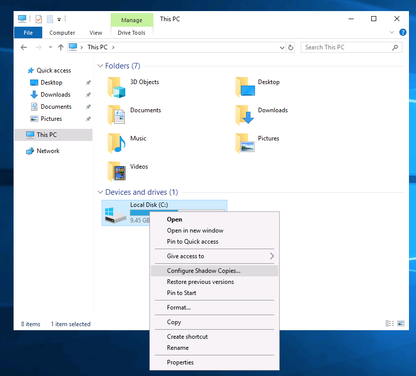If VSS is enabled (System Protection turned on), you can perform the following tasks from within advanced system settings.