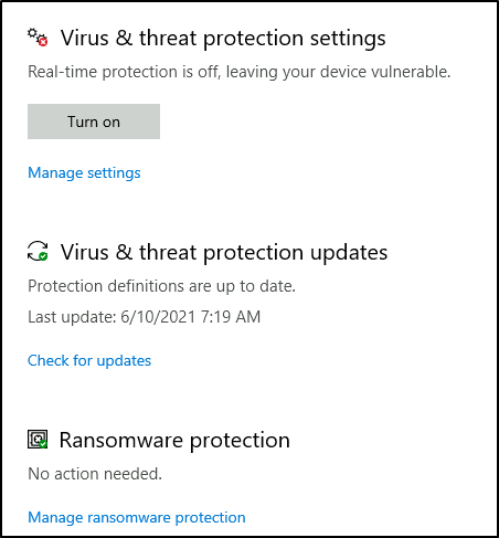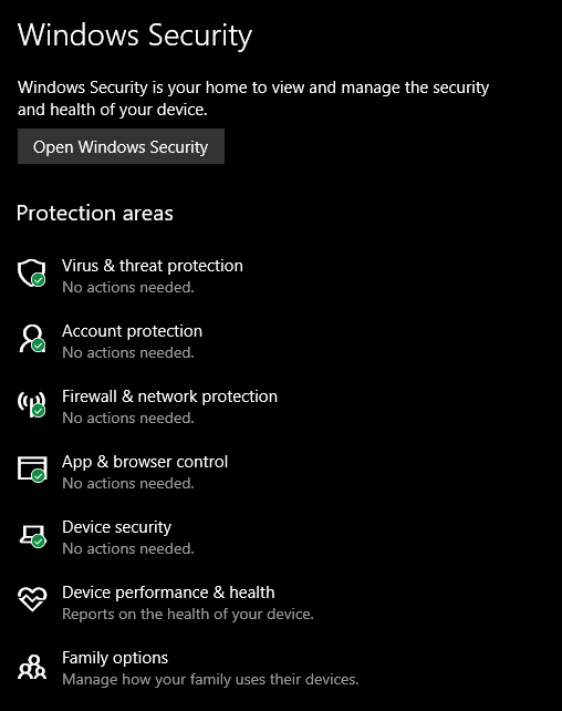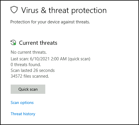 Last scan- Windows Defender Antivirus automatically scans your device for viruses and other threats to help keep it safe.Quarantined threats- Quarantined threats have been isolated and prevented from running on your device. They will be periodically removed.Allowed threats- Allowed threats are items identified as threats, which you allowed to run on your device.