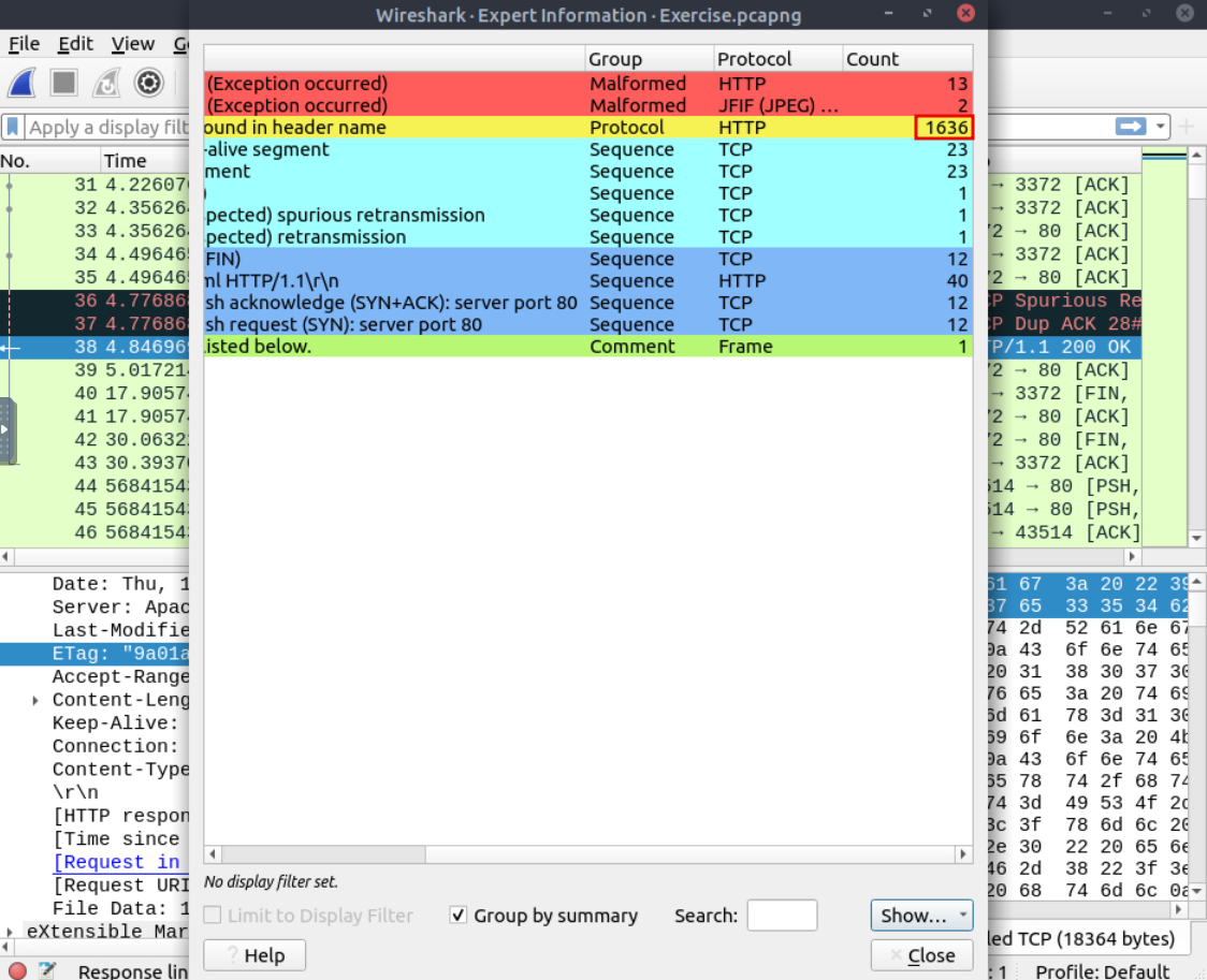 Wireshark also detects specific states of protocols to help analysts easily spot possible anomalies and problems. Note that these are only suggestions, and there is always a chance of having false positives/negatives. Expert info can provide a group of categories in three different severities. Details are shown in the table below.