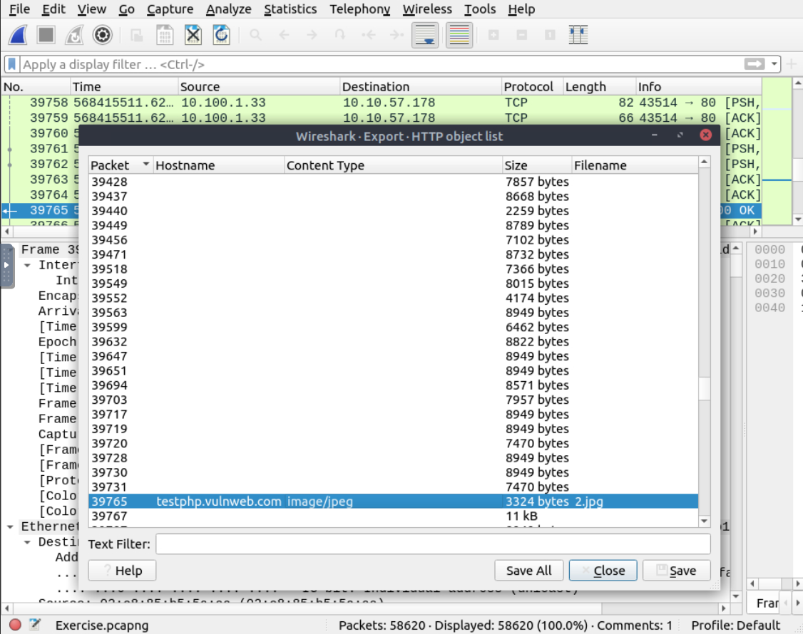 Wireshark can extract files transferred through the wire. For a security analyst, it is vital to discover shared files and save them for further investigation. Exporting objects are available only for selected protocol’s streams (DICOM, HTTP, IMF, SMB and TFTP).